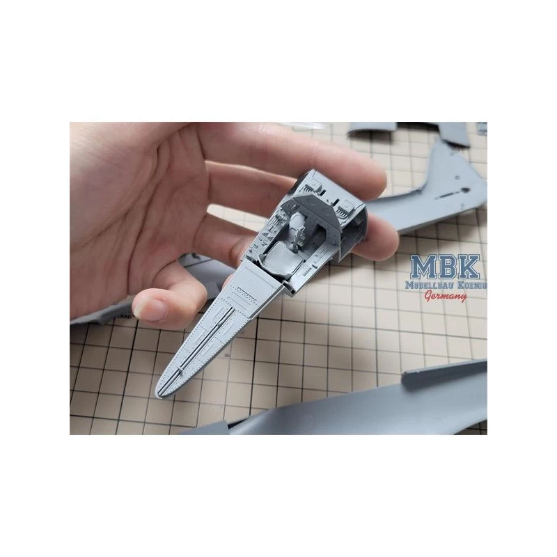 This model kit features a precise reproduction of the cockpit and engine;