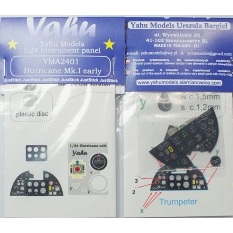 The best sellers of this manufacturer at 1001Hobbies are : North-American P-51D Mustang Photoetched instrument panels. Coloured. Ready to fit in a model (JustStick) (designed to be used w, Messerschmitt Bf 109G Photoetched instrument panels. Coloured. Ready to fit in a model (JustStick) (designed to be used with Rev, Boulton-Paul Defiant Mk.I (designed to be used with Airfix kits) and Douglas SBD-1/SBD-2/SBD-3/SBD-4 Dauntless early version (designed to be used with Trumpeter kits) .