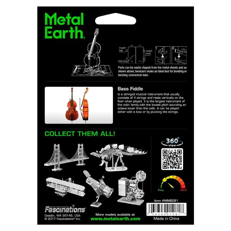 MetalEarth Music: VIOLIN BASS 3.7×2.2×11.7cm, metal 3D model with 1 sheet, on card 12x17cm, 14+