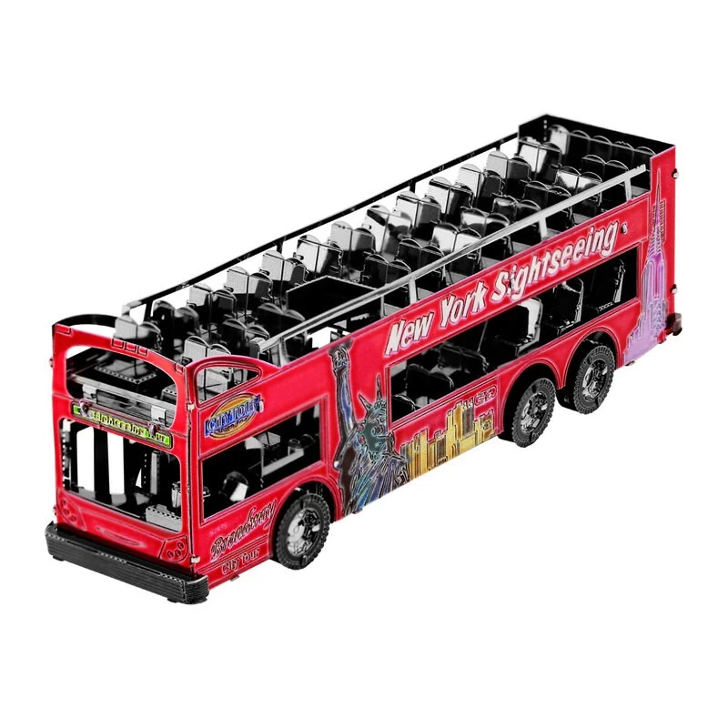 MetalEarth Vehicles: NY TOURIST BUS 10.2×2.7×3.4cm, 3D metal model with 3 sheets, on 12x17cm card, 14+
