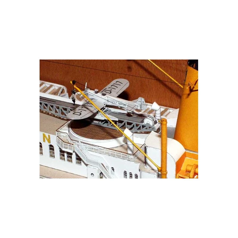This model is definitely something special. It includes the interior of the bridge, the dining hall of the 1st class, and the smoker room. It also includes a catapult and an airplane for mail delivery.