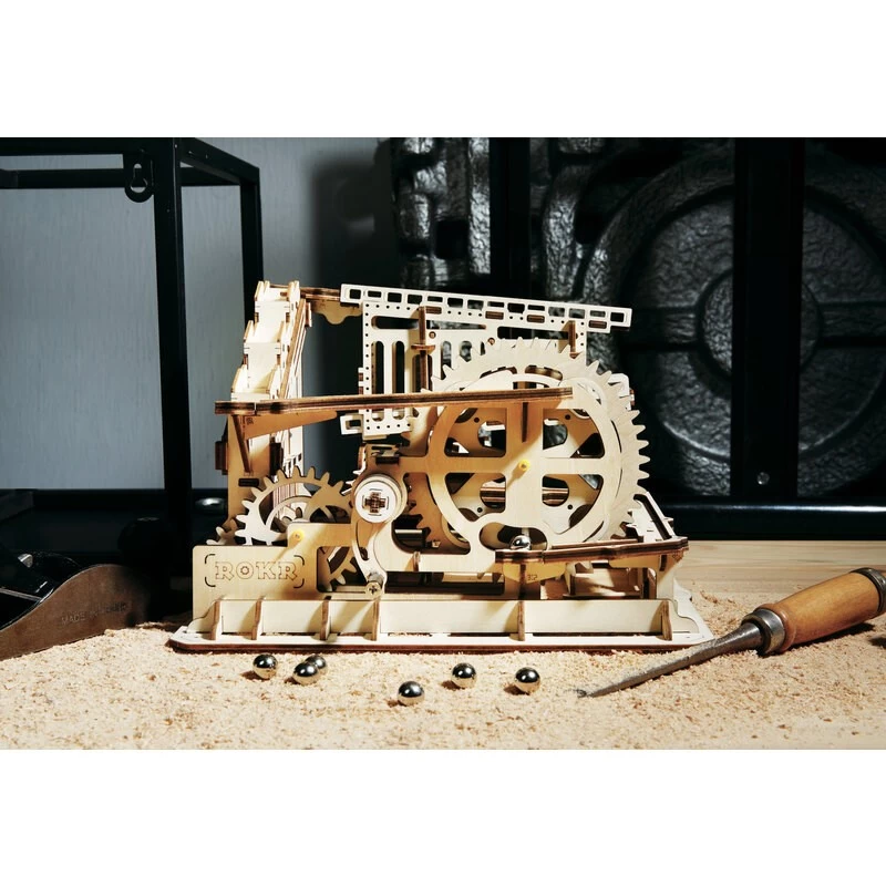 - SELF-ASSEMBLY: handcrafted Marble Run set based on real lift coaster, intricate system of cogs & gears