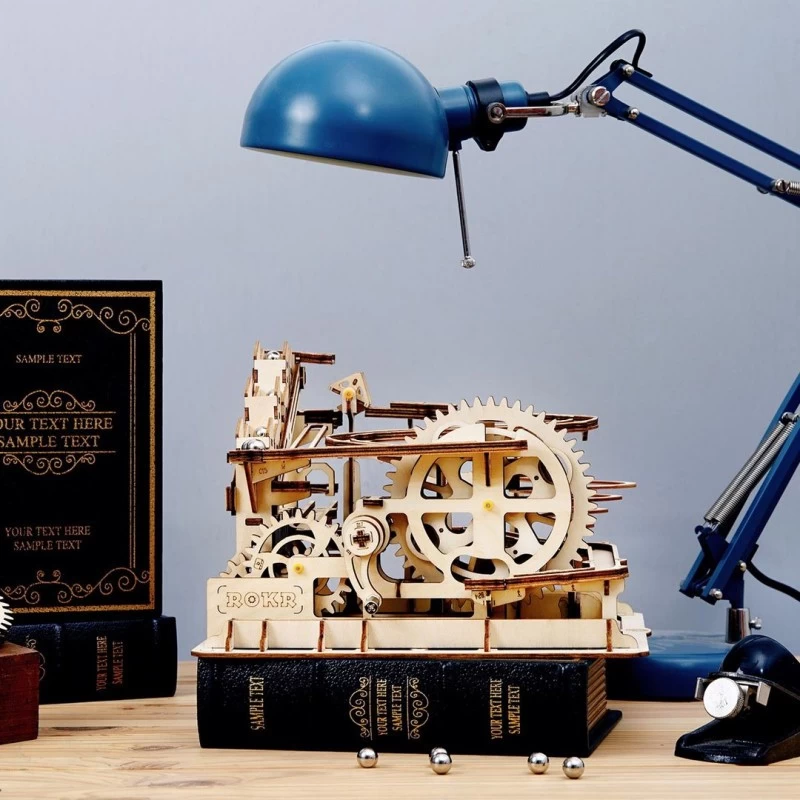 Build this Rokr marble run 3D wooden puzzle set and crank the handle, watch marbles run crazy down the slopes and twisting turns. Have fun!