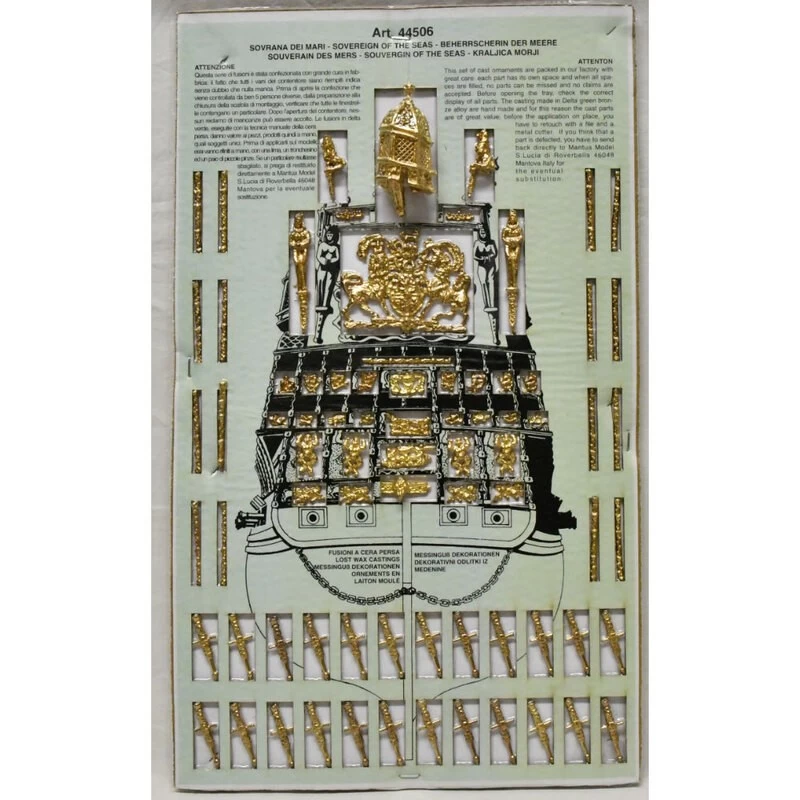 Its beautiful superstructure includes over 700 pieces of hardware cast in bronze and cast 102 cannons, deadeyes and wooden pulleys, flags printed silk.